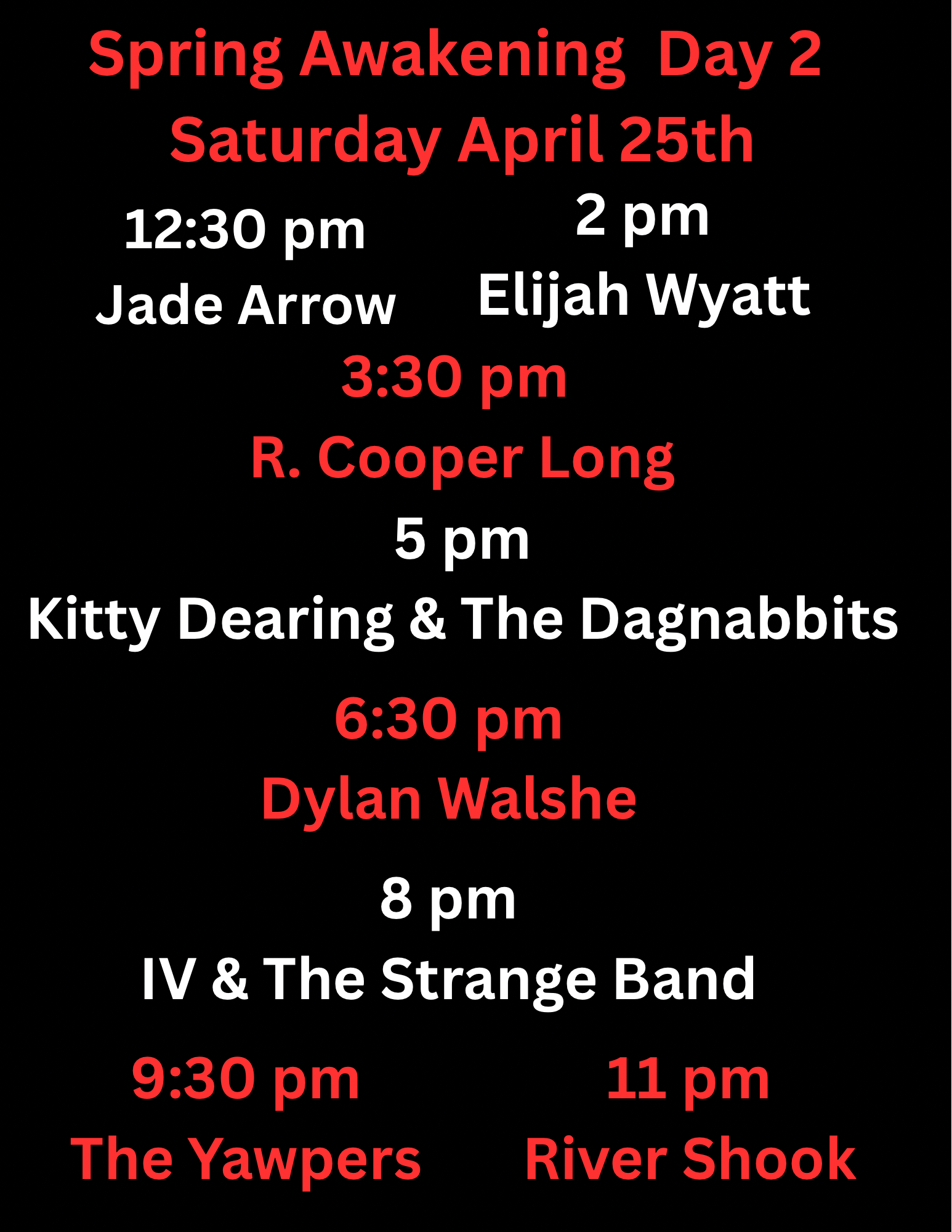 Lineups and times are subject to change.